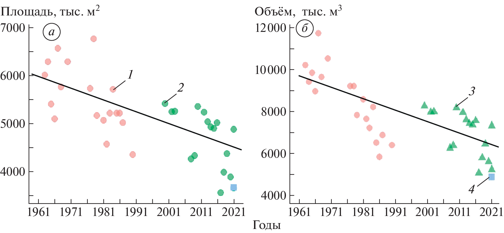 The huge Anmangynda aufeis is located in the valley of the river of the same name in the Magadan region in North-East of Russia. This is the only in the world aufeis site with a 30-years period of ground-based observations (1962–1991). The materials of these observations were supplemented with data obtained from the analysis of Landsat and Sentinel satellite images for the period 2000–2021, as well as the results of field investigations carried out in 2020–2021. The long-term variability of the maximum area, volume and average thickness of ice, the dynamics of formation and destruction of the aufeis ice in the cold and warm periods of the year were analyzed. It was found that the maximum values of the area and volume of ice on the dates before the start of ablation decreased by 25 and 33%, respectively. In 2000–2021, the average values of the aufeis characteristics are estimated as 4.7 km2 and 7.1 million m3, while in 1962–1991 – 5.5 km2 and 8.5 million m3. The analysis of the intra-annual dynamics revealed that the Anmangynda aufeis being earlier the perennial formation has transformed to the seasonal one. Further researches of the Anmangynda aufeis will make possible to assess the influence of various factors, including climatic ones, on the processes of an aufeis formation and to forecast their changes in the future for the cryolitic zone of the North-East of our country.
