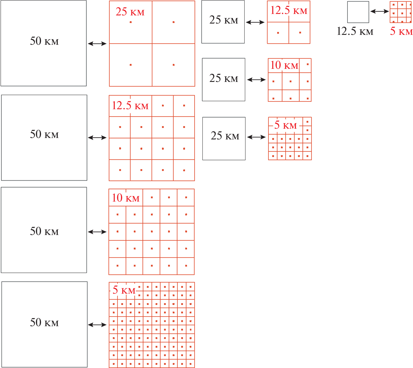 Ice pressure is characterized with significant spatial variability. Study of this variability with the help of in situ observations is rather difficult, because (1) the instrumental measurements are expensive and technically complicated, and, hence, the amount of such measurements is little, and (2) the visual observations have predominantly qualitative character and depend significantly on the observer’s experience. The most widely used method of obtaining the ice pressure information is model simulations. The existing ice dynamics models allow simulating the ice pressure averaged within the area of the model grid cell, which usually has the spatial size varying from 5 to 25 km, sometimes - up to 50 km. It is clear that such spatial resolution does not give the picture of local peaks of ice pressure with spatial scale much less that the size of the grid cell. The aim of the presented paper is, basing on the model results with spatial resolution from 5 to 50 km, to study the statistical correlations between the ice pressure fields with various spatial resolutions, and to evaluate the possibility of calculating the intensity and probability of ice pressure peaks with spatial scale less than the spatial resolution of the model. In order to solve this problem, the numerical dynamic-thermodynamic model of ice cover evolution developed both for the entire Arctic Ocean and for large regions (the Barents and Kara Seas), and, for more detailed spatial resolution, for some smaller basins (the Pechora Sea, the south-western Kara Sea, the Baidara Bay), was used. The ice pressure fields within the same region and the same period of time were simulated with various spatial resolutions – from 5 to 50 km. The initial ice conditions were stated with the help the AARI ice charts which cover both the entire Arctic Ocean and the specific regions mentioned above. The comparison of model results with various spatial resolutions allowed revealing moderate statistical correlation between the average ice pressure obtained from the lower resolution model, and ice pressure dispersion obtained from the higher resolution one (correlation coefficients comprise from 0.3 to 0.7). This correlation is put into base of the main principles of calculating the extreme ice pressure in the spatial scale much less than the spatial resolution of the model. The statistical probability of the extreme ice pressure is strictly connected with the ratio between the spatial resolution of the model and the spatial scale of the extreme ice pressure to be estimated. For example, as the preliminary calculations show, if the spatial resolution of the numerical model equals 50 km, the extreme ice pressure in the scale of 1 km can exceed the mean value by 5–7 times. It gives on opportunity to obtain more comprehensive picture of ice pressure, and, as the method would be developed further, to increase significantly the informative value of the ice pressure forecasts. The limits of applicability of the proposed approach are discussed specifically.