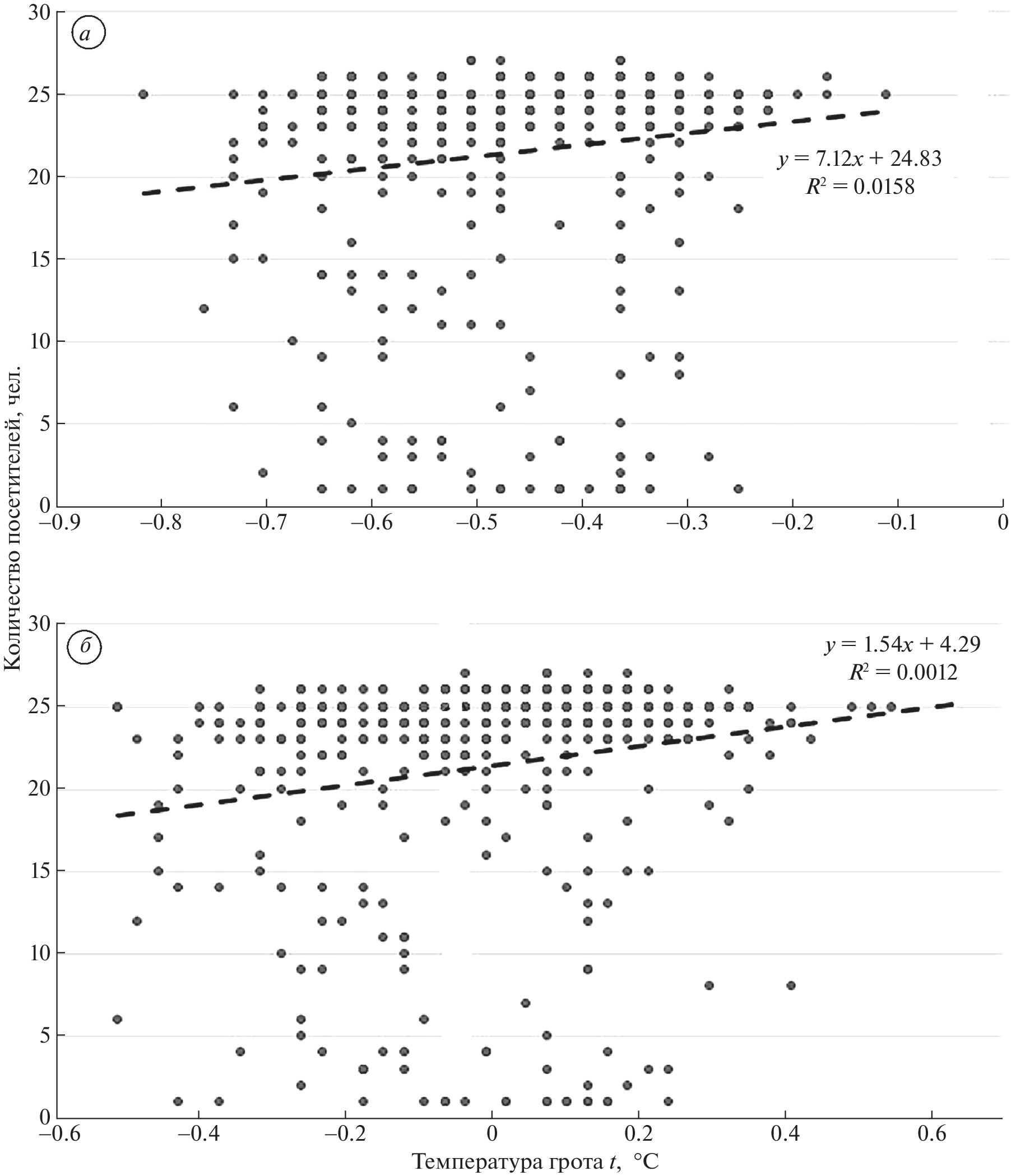 The Kungur Ice Cave is visited by thousands of tourists every year, so the question of anthropogenic influence on changing its state is acute. Snow and ice formations are the main attraction of the cave. From the moment of discovery and improvement of the cave, the thickness of glaciation began to depend not only on natural, but also on technical and anthropogenic conditions. First, this is a change in the temperature of the outside air, the annual rise of underground and surface waters (the Sylva River), the construction of inlet and outlet tunnels, artificial ventilation, and the number of tourists. To assess the impact of the flow of tourists on the microclimatic characteristics of the Cave, the staff of the Kungur Stationary Laboratory conducted research during the period of maximum anthropogenic load in the summer of 2022. The data analyzed in this article made it possible to clarify that the existing tourist load has an insignificant impact on the microclimate of the Cave. After the passage of each group of tourists, the air temperature in the grottoes slightly increases (by a maximum of 0.1–0.2°C) but is restored during the daytime within 4–12 minutes, and at night the temperature regime is completely restored. The maximum tourist load per day is 825–925 people or more, depending on the operating mode of the Cave. Thus, the visiting regulations and the allowed throughput of the cave are currently chosen correctly. The number of tourists is not so large as to limit the visit to the Cave to protect the ice formations, especially since the first-year ice is renewed every winter.