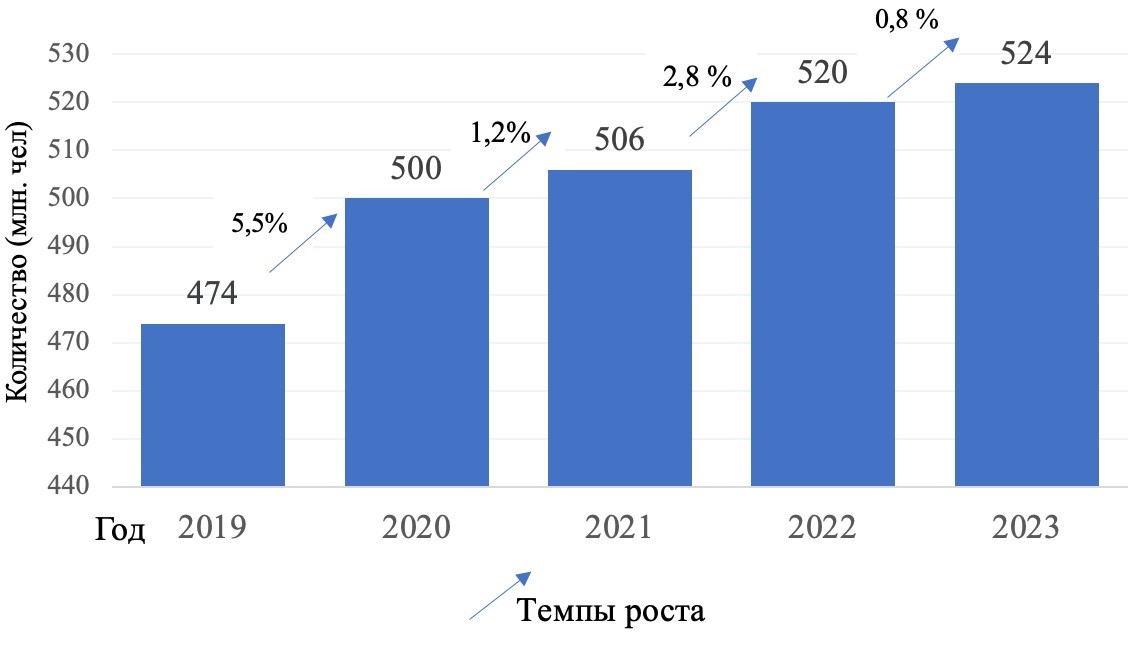 Как показал анализ, в Китае фиксируется ежегодный поступательный рост численности киберспортивных пользователей (рисунок 2).