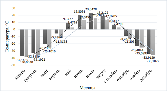 Этот подход использован для прогнозирования сроков начала и окончания эксплуатации автозимников (рисунок 2), который основан на использовании «тригонометрической модели» Хромова С. П., имеющей вид: