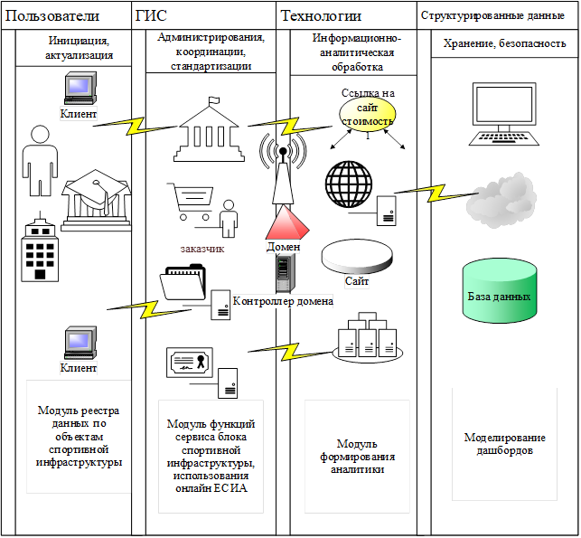 В качестве модулей цифрового пространства сегмента спортивных сооружений можно предложить следующие (рисунок 1):