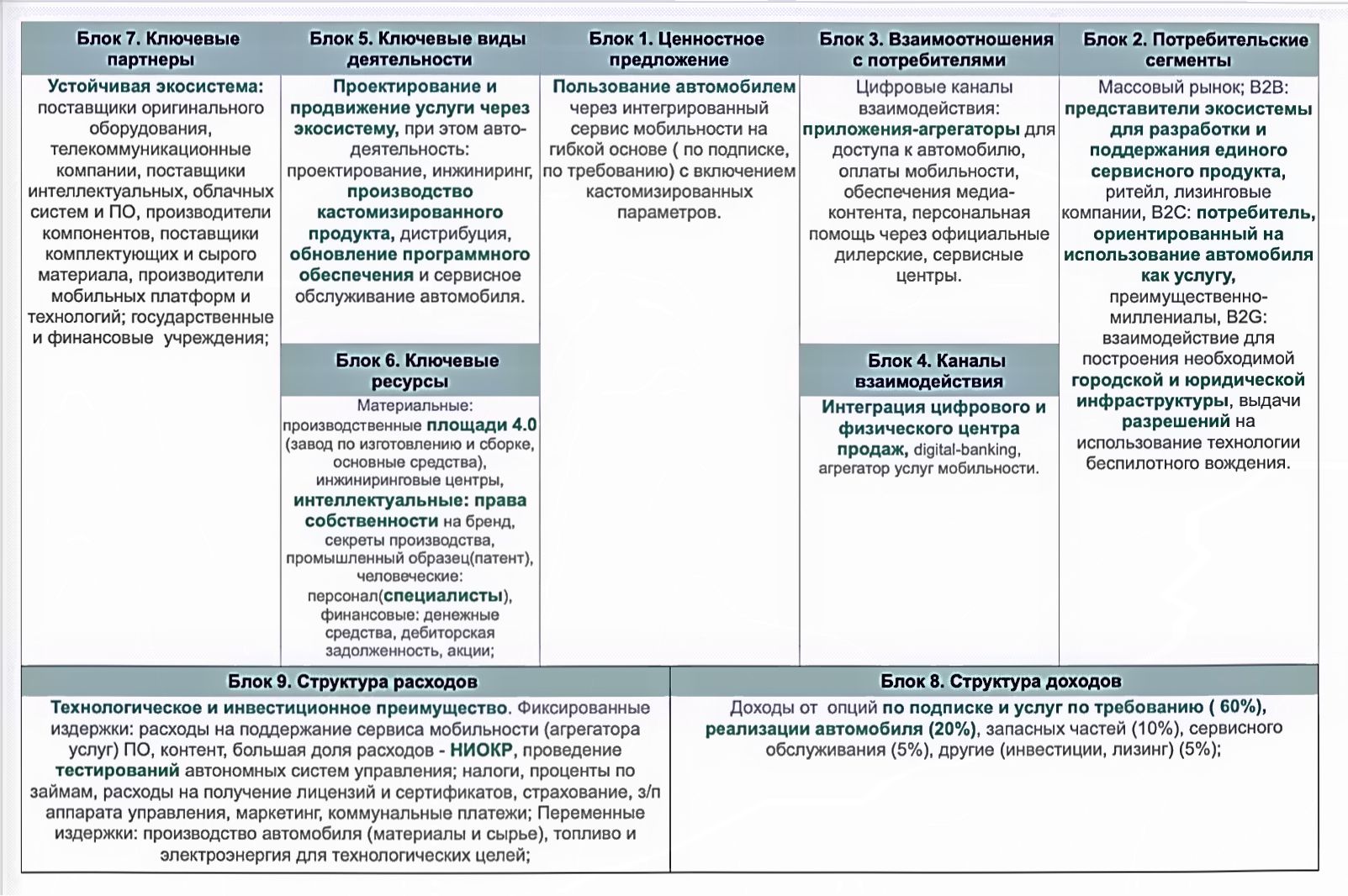 Предложения по формированию инновационных бизнес-моделей автопроизводителей