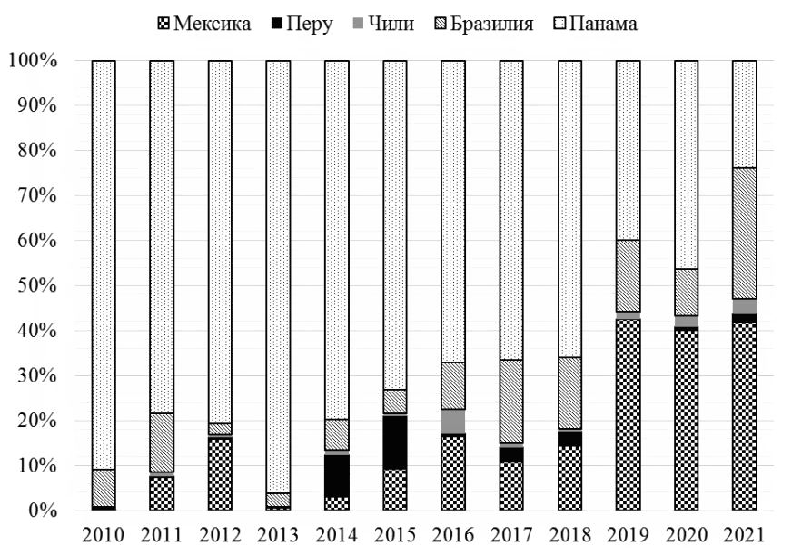 9 Толмачев М. Н. Экономическая база Латама: на чем живет глобальный рынок Южной Америки. Аналитический материал на сайте РБК. – URL: https://trends.rbc.ru/trends/social/62d1445a9a79477 08d3e28d4 (дата обращения: 01.02.2023).