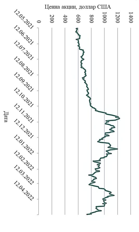 Рисунок 2. Изменение цены акции промышленной компании в течение года