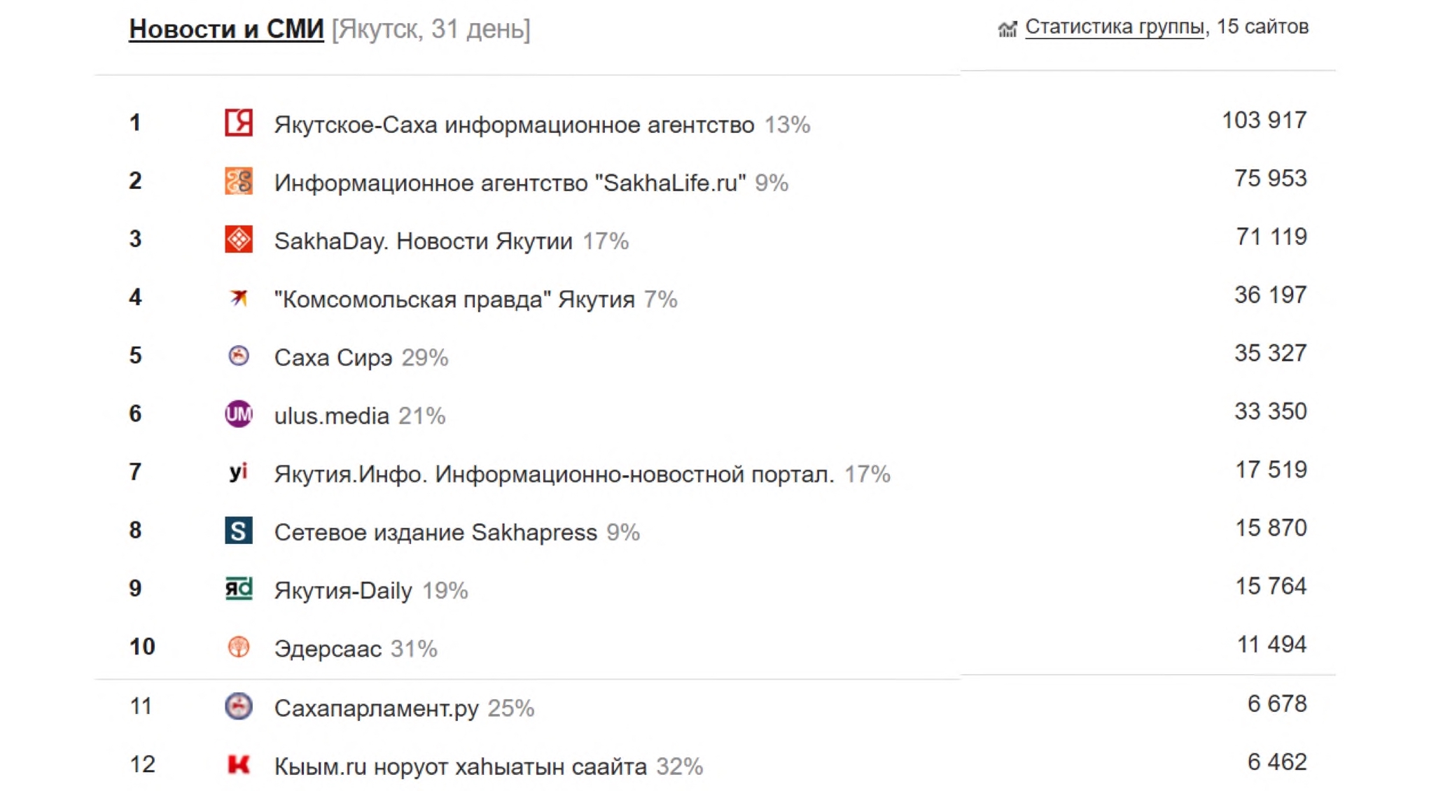 Fig 6. Rating of websites of the Republic of Sakha (Yakutia) according to LiveInternet (November 2023)