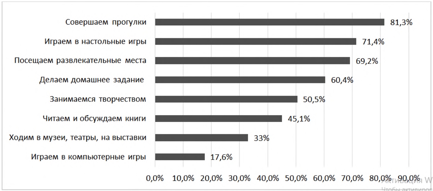 Fig 1. The distribution of answers to the question «what do you usually do with your child/children during free time?» (percentage of the number of respondents)