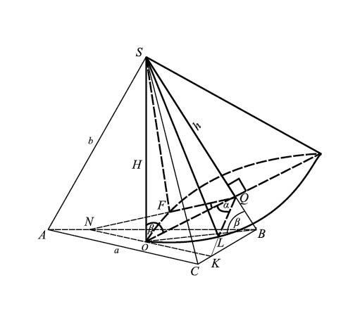 где 2a - центральный угол кругового сектора. Нам остается лишь выразить и через сторону основания a пирамиды и двугранный угол a. Из прямоугольного треугольника , в котором , найдем, что