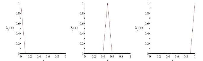2. Fig. 1. The graphs of the hat functions λ0(x), λi(x), i = 1, 2, ...,n − 1 and λn(x) (from the left to the right).