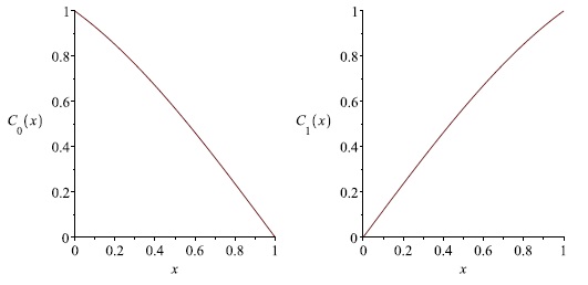 3. Fig. 2. The graphs of coefficients C0(x) and C1(x) defined by (16)(from the left to the right).