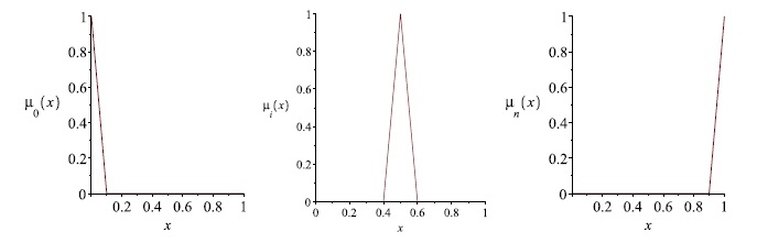 4. Fig. 3. The graphs of the functions μ0(x), μi(x), i = 1, 2, ...,n − 1 and μn(x) (from the left to the right).