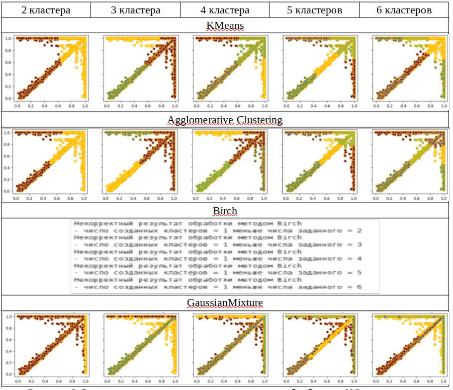 - ’Birch’ (алгоритма Берча) - протокол сбалансированных итераций и кластеризация с использованием иерархического метода;