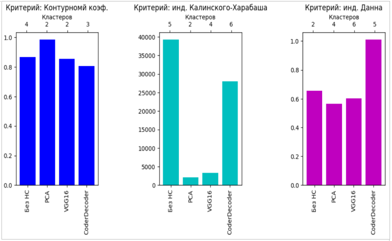 Рис. 3. Оценка качества кластеризации без выполнения предобработки отображений