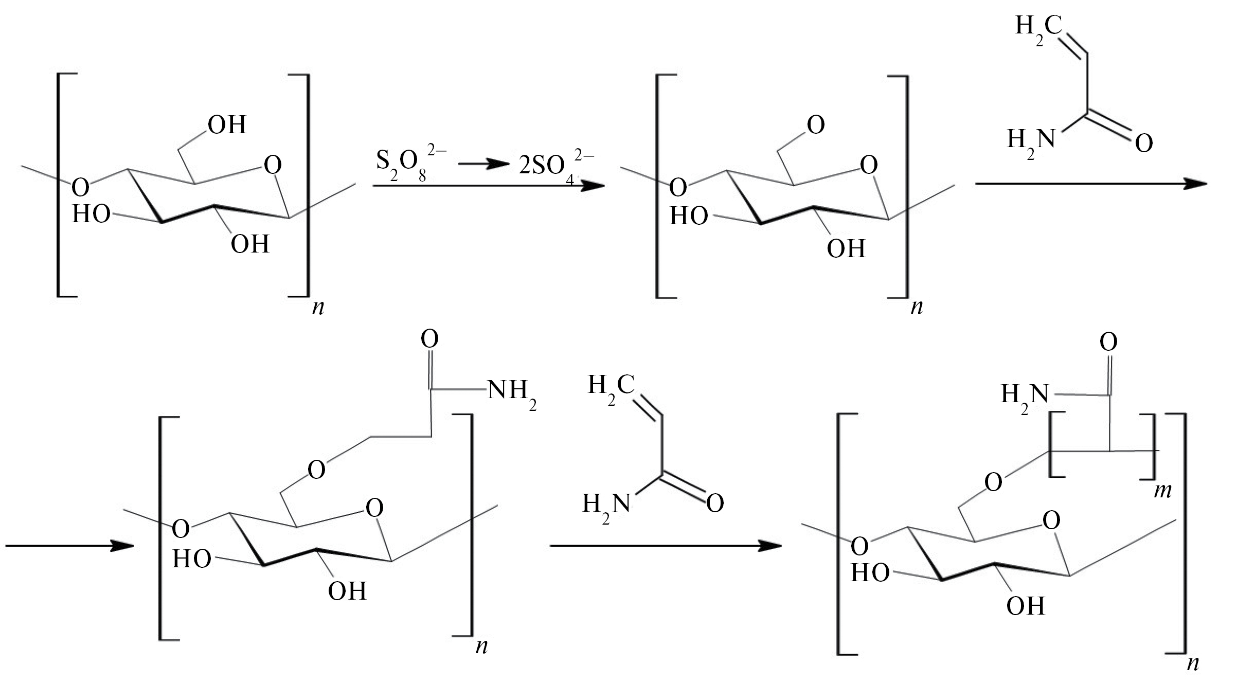 Рис. 1. Привитая полимеризация крахмала акриламидом