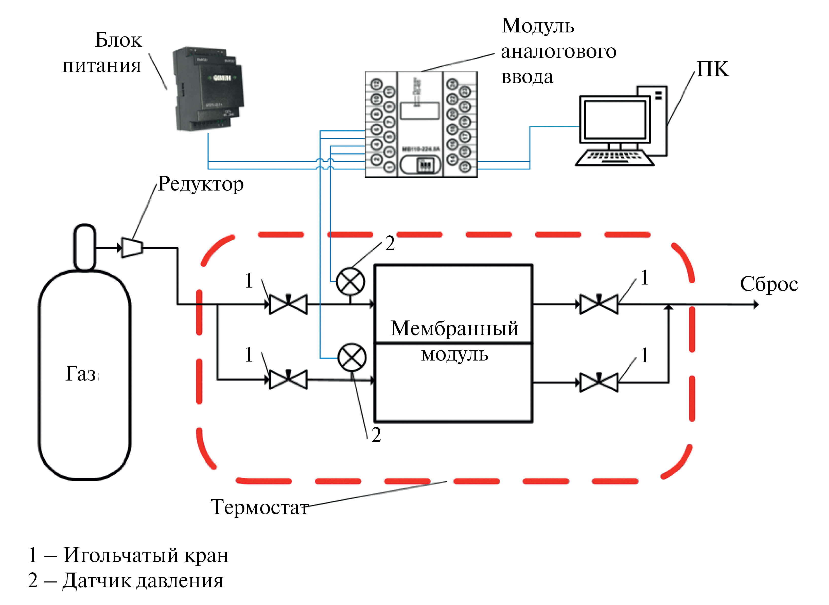 Рис. 4. Принципиальная схема установки для измерения проницаемости
