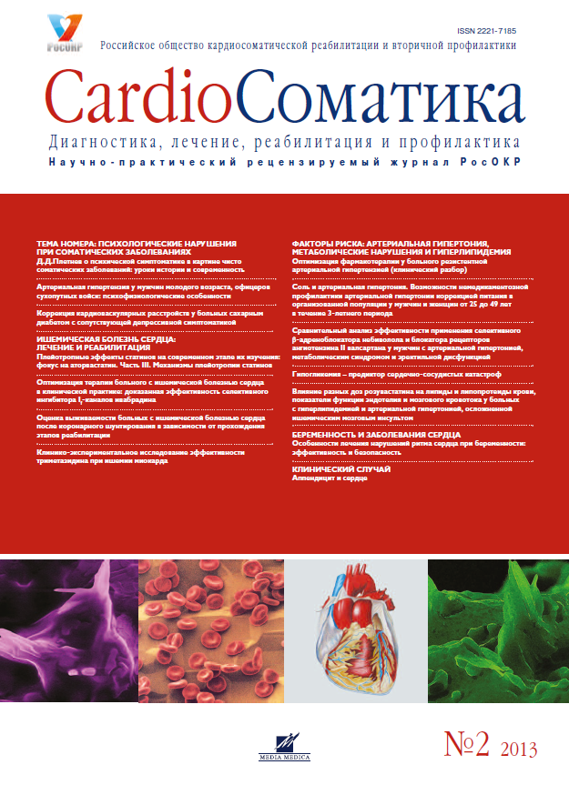 Objective: to study the dose-dependent effect of rosuvastatin on blood lipids and lipoproteins (LP), endothelial functional activity, coagulation, and safety parameters in patients with hyperlipidemia (HLP) and hypertension after cerebral ischemic stroke (CIS). Subjects and method. The trial included 34 patients (mean age 59,4±7,4 years) with types IIa or IIb HLP and CIS-complicated hypertension. The patients were randomized to 2 groups: 1) rosuvastatin 10 mg and 2) rosuvastatin 20 mg. The trial lasted 12 weeks. The dose of rosuvastatin remained unchanged throughout the trial. The authors evaluated the impact of therapy on the blood concentration of lipids, LP, fibrinogen, end products of nitric oxide (NO) metabolism, and endothelin-1 (ET-1), cerebral blood flow by great cerebral artery Doppler ultrasound data, as well as the parameters reflecting the safety of the therapy. Results. After 12-week therapy with rosuvastatin 10 and 20 mg, there was a significant decrease in the level of cholesterol by 30 and 35%, low-density lipoprotein (LDL) cholesterol by 40 and 45%, and triglycerides by 18 and 26%, respectively. Increasing the dose of rosuvastatin was attended by a significant rise (by 18%) in the number of patients with target LDL cholesterol levels. Rosuvastatin therapy caused no changes in the high baseline level of fibrinogen. At the same time, at the rosuvastatin doses of 10 and 20 mg, the concentrations of end products of NO metabolism increased by 14,3 and 12,4%, respectively. The vasoprotective effect of rosuvastatin 20 mg showed itself just at therapy week 6. Significantly decreased ET-1 levels were found when rosuvastatin was given in a dose of 10 mg; this was directly related to the baseline concentration of ET-1. In the patients who had an ET-1 level of >0,51 fmol/ml, its drop was 22,5% (p<0,05). Some improvement of cerebral blood flow velocities in the internal carotid artery and in the V2/V3-segments of the vertebral artery might be expected in post-CIS patients taking the average dose (20 mg) of rosuvastatin. It should be remarked that the test doses of rosuvastatin are well tolerated and cause no adverse reactions. Conclusion. The antiatherogenic and pleiotropic effects of the two rosuvastatin doses 10 and 20 mg were shown in the post-CIS patients with HLP and hypertension. The pleiotropic activity of rosuvastatin, such as an increase in NO bioavailability and a reduction in ET-1 concentrations, was manifested when both the starting (10 mg) and average (20 mg) doses of rozuvastatin were used. At the same time, rosuvastatin showed dose-depended effects in lowering LDL cholesterol levels, enhancing NO bioavailability, and improving cerebral blood flow velocities.
