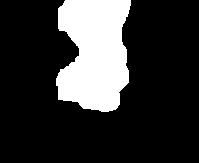 Функция TreeIdentification2 отвечает за разделение одного контура, если он включает кроны нескольких деревьев. На рисунке 10 представлен пример входного изображения одиночного контура. Изображение переводится в градации серого функцией cv2.cvtColor. cv2.threshold применяет порог фиксированного уровня. На рисунке 11 представлен пример порога фиксированного уровня. cv2.dilate расширяет снимок для устранения случайных разрывов. На рисунке 12 представлен пример расширения снимка. cv2.distanceTransform вычисляет Евклидово преобразование расстояния. Диапазон значений нормируется к стандартной градации изображений в оттенках серого функцией cv2.normalize. На рисунке 13 представлен пример нормализованного Евклидова преобразования расстояния. cv2.adaptiveThreshold применяет адаптивный порог на основе среднего значения. На рисунке 14 представлен пример адаптивного порога на основе среднего значения. Функция cv2.erode сужает изображение в соответствии с выбранным количеством итераций, а cv2.morphologyEx удаляет возникший шум. На рисунке 15 представлен пример сужения снимка.