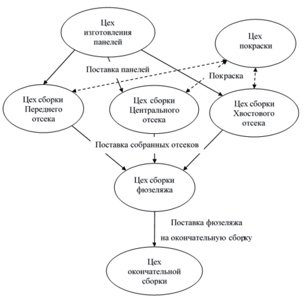 Рисунок 7 – Упрощённая схема взаимодействия производственных цехов для ВТИ «Самолёт»