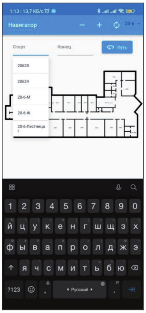 - следующее действие (если путь проложен не только на одном этаже, а затрагивает переходы между этажами и корпусами).