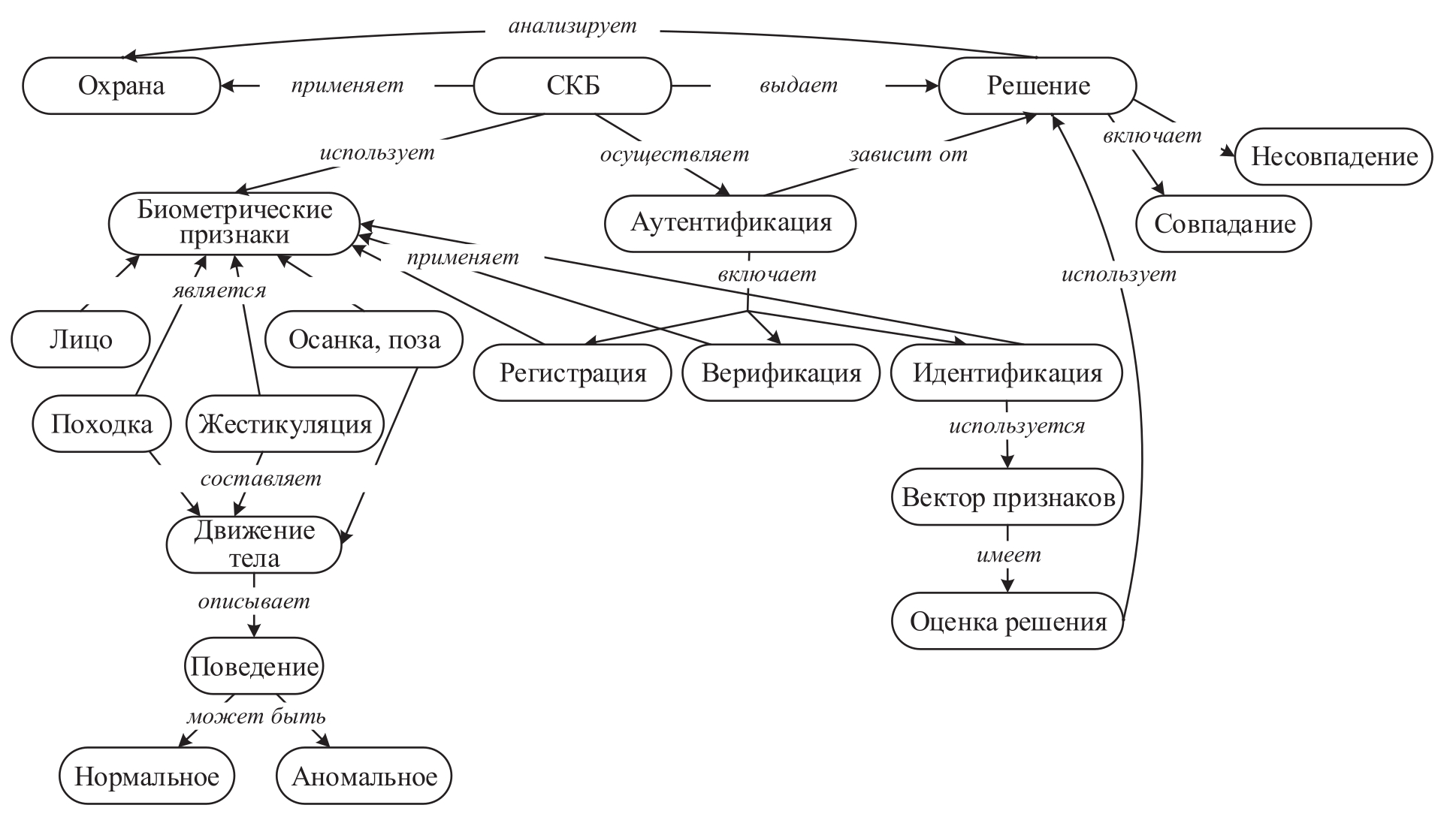 - необходимо разработать базовую архитектуру СКБ и процесс аутентификации по движению тела и лицу (при комбинировании технологически отработанных методов);