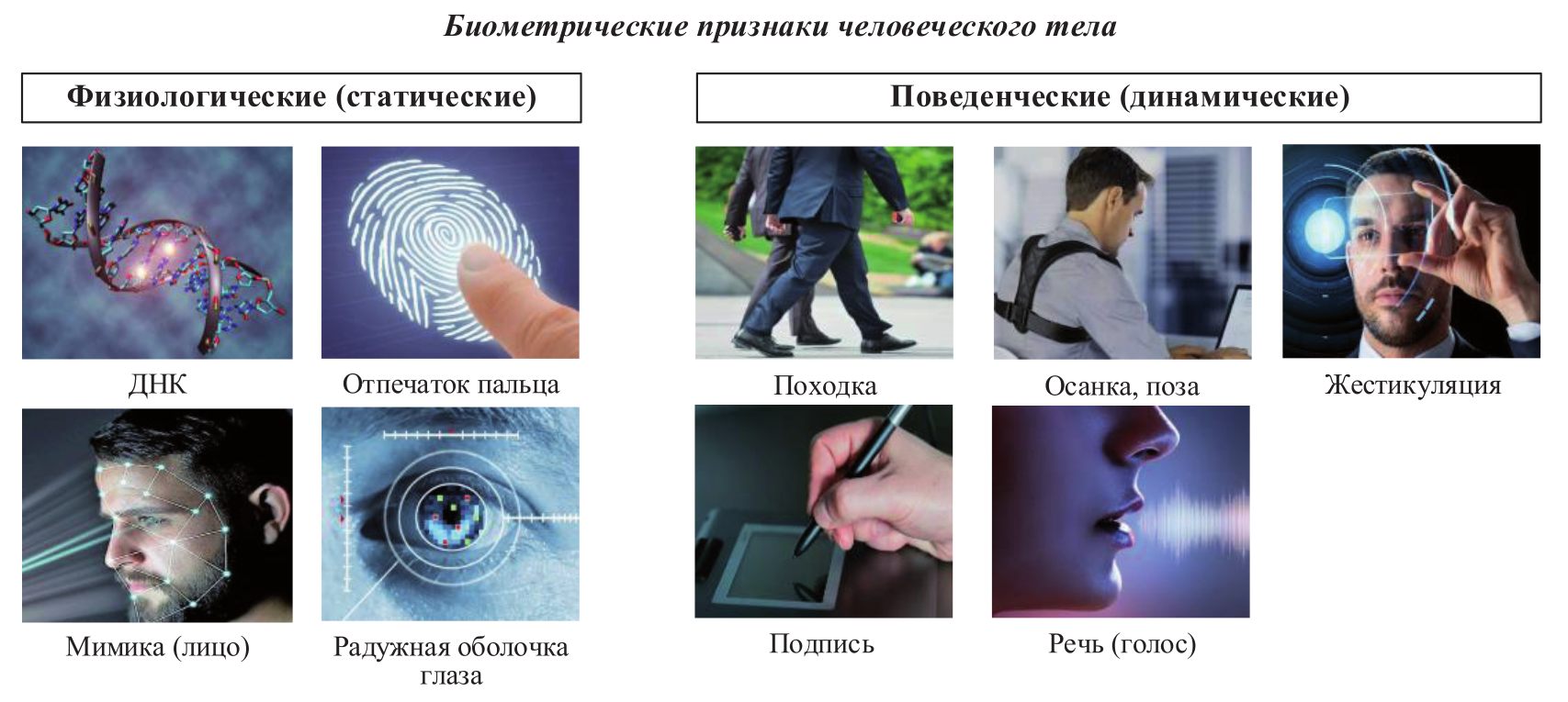 Рисунок 2. Типы биометрических признаков для выявления потенциального нарушителя