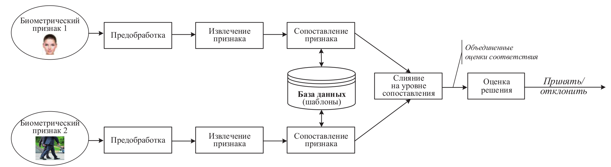 Интеграция разнородной информации, поступающей из разных источников, является одним из основных приёмов проектирования СКБ по распознаванию человека, основанных на слиянии множества биометрических признаков [33-36].