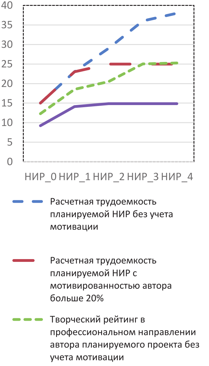 Максимальный профессиональный творческий рейтинга автора НИР | Максимальнаямотивированность автора НИР | Мотивированность автора НИР «важнее» его профессионального творческого рейтинга | ||