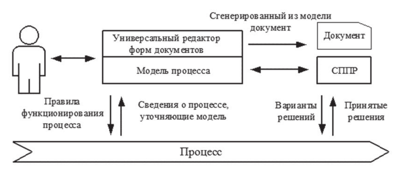 В целях повышения эффективности системы поддержки принятия решений (СППР) на промышленных предприятиях необходимы СОМ. Одним из важнейших элементов управления промышленным предприятием или его БП на основе СППР является метод поддержания актуальности соответствующих компонентов. Реализация данного метода осуществляется через разработку и интеграцию моделей ИС в нормативные и технологические документы предприятия для создания ситуации, в которой любые изменения в документах не были бы возможны без соответствующих изменений в модели БП предприятия. Модель БП должна храниться в виде записей в БД (см. рисунок 2).