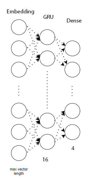 - Слой GRU – рекуррентный слой НС. Включает 16 блоков.