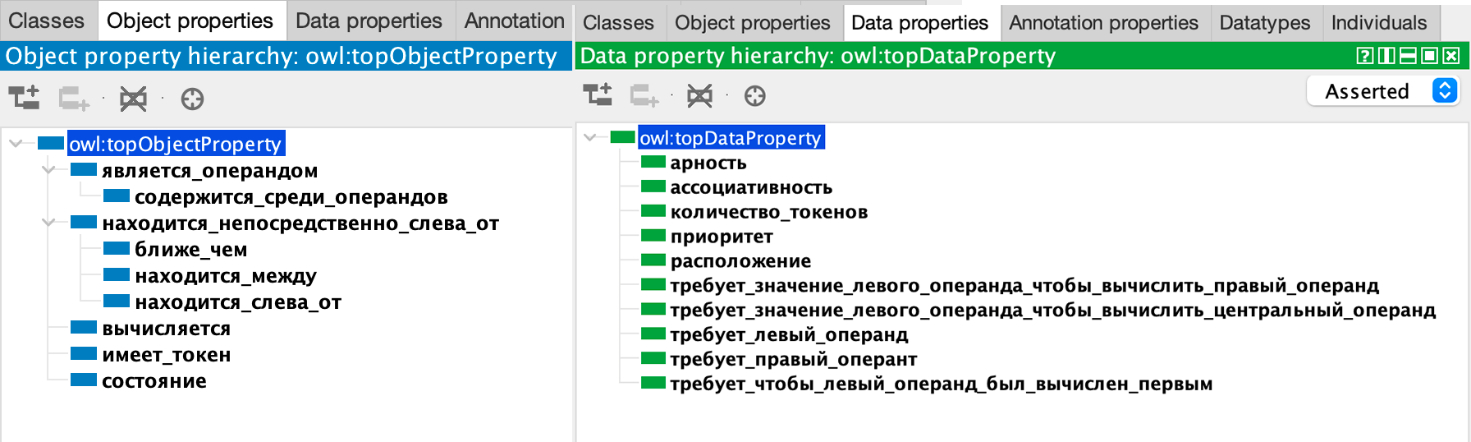 Рисунок 3 – Типы отношений для выражения на языке программирования на примере C++ (выполнено в редакторе Protege)