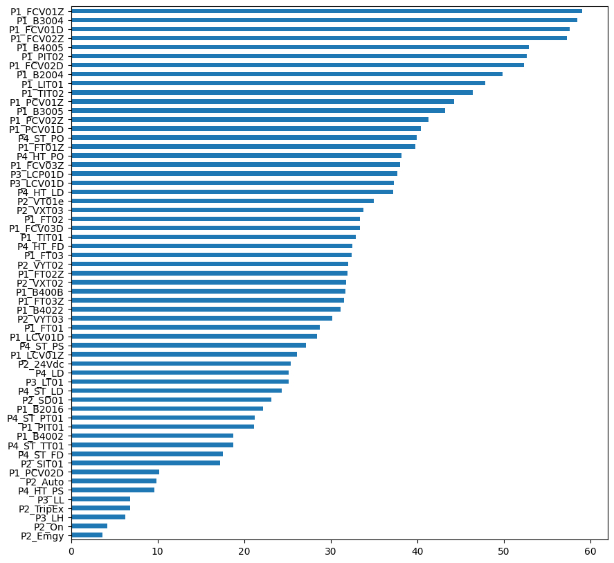 Наибольший вклад в обнаружение аномалий на наборе данных HAI 2.0 вносят признаки P1_FT02 (измеренный расход воды в баке нагревателя), P1_FT02Z (преобразование расхода воды из P1_FT02) и P1_B4002 (заданное значение температуры на выходе теплообменника). Как и для предыдущей версии набора данных, большое влияние имеют параметры, осуществляющие контроль температуры воды.