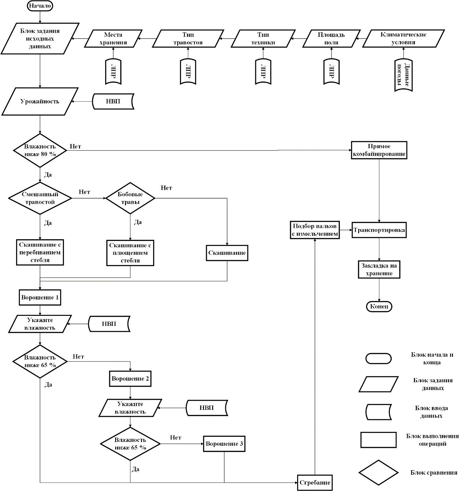 Рисунок 1 – Технологическая карта уборки трав на силос (НВП - нечётко-возможностный подход, ЛПР - лицо, принимающее решения)
