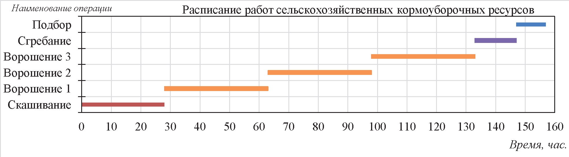 Рисунок 6 – Диаграмма планирования работ сельскохозяйственных кормоуборочных ресурсов при высокой интенсивности исполнения технологических операций
