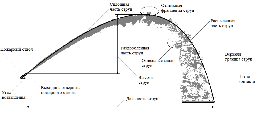 Предметная область настоящей работы ограничена свободными струями огнетушащего вещества из пожарных стволов, движущегося в воздухе под воздействием сил сопротивления, тяжести и т.д., без учёта ветра