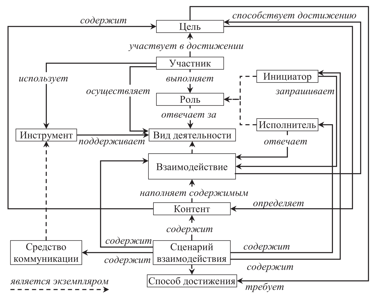 Сценарий взаимодействия – конкретный способ, способствующий достижению цели и предлагающий последовательность коммуникативных актов между участниками в соответствии с выполняемыми ими ролями и с использованием при необходимости средств коммуникации.