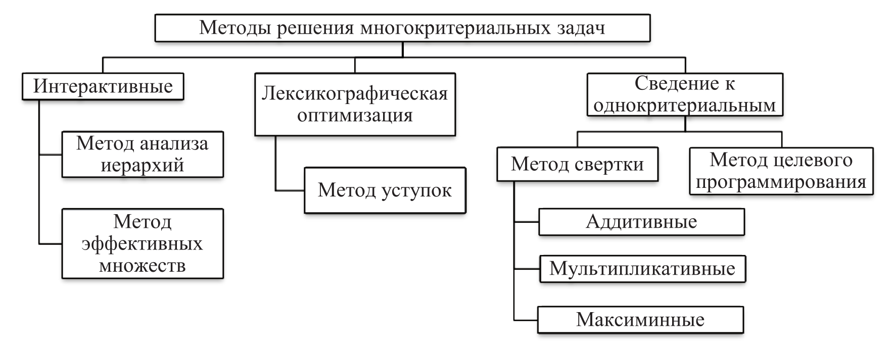 ММПР разрабатывались в трудах отечественных и зарубежных авторов в различных областях. Например, среди отечественных исследователей можно отметить: решение многокритериальных задач линейного программирования (академик С.В. Емельянов [2]); задачи оптимального управления (академик Н.Н. Моисеев [3]); многокритериальную оптимизацию с ранжированием критериев по важности (профессор Е.С. Вентцель [4]); ММПР при конструировании машин и механизмов (И.М. Соболь и Р.Б. Статников [5]); методы свёртки критериев в многокритериальных задачах оптимизации (профессор Ю.Б. Гермейер [6]); методы сравнения важности неоднородных критериев и групп критериев (профессор В.В. Подиновский [7]) и др. По данным научной электронной библиотеки elibrary.ru, а также публикациям [8, 9] в последние годы наблюдается рост статей по ММПР.