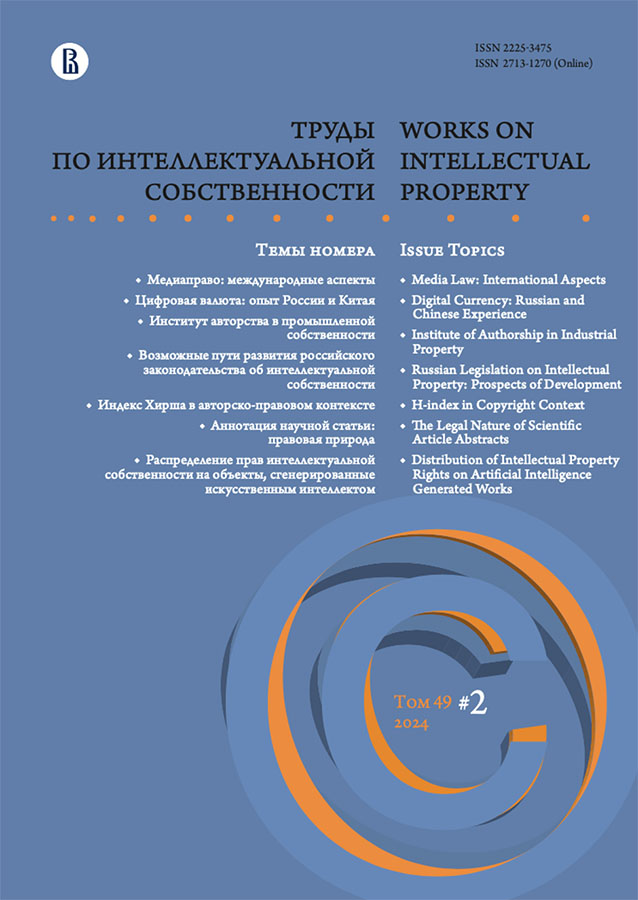 Scientific publications as works of science are one of the significant objects of copyright. As is known, various indicators are used to assess the scientific productivity of scientists and specialists in scientometrics, the most common of which is the Hirsch index or h-index. The Hirsch index is calculated by the number of citations of a researcher’s works included in a particular database. For the CIS countries, an important database of scientific and educational publications is the Russian Science Citation Index (RSCI) database. Internationally, Scopus and Web of Sciences databases have become widespread. One of the problems with using the h-index is whether the ratings comply with copyright regulations. The Hirsch index shows the comparative efficiency of the work of a scientist or a team of scientists. But as it is easy to see, according to the calculation of the h-index according to the RSCI databases, for individual scientists their contribution and participation in collective publications and their citations are not taken into account. In the case when publications are carried out by groups or teams of scientists, all scientists and researchers participating in the publication of a joint scientific work have the status of co-authors of this publication. Relations between co-authors are determined on the basis of an agreement, in the absence of which the copyright for publication is exercised by all co-authors jointly, and the remuneration is distributed equally between them. It is proposed that in order to assess the individual citation index of scientists’ publications, introduce a modified Hirsch index, called the Hirsch index “plus” or h+, which is calculated based on dividing the usual number of citations of a particular publication by the number of co-authors of the cited publication, which will not cause difficulties in calculating h+ indices, using algorithm for determining the Hirsch index itself. This indicator takes into account the interests of co-authors from the point of view of copyright and more accurately assesses the effectiveness of the work of a particular scientist in comparative assessments of their work. Also, for a comparative assessment of individual citation indices of scientists and specialists, it is proposed to introduce an author’s index averaging coefficient — kc, equal to the cube root of the total number of co-authors, by which the corresponding Hirsch index or other citation index of a particular author is divided.