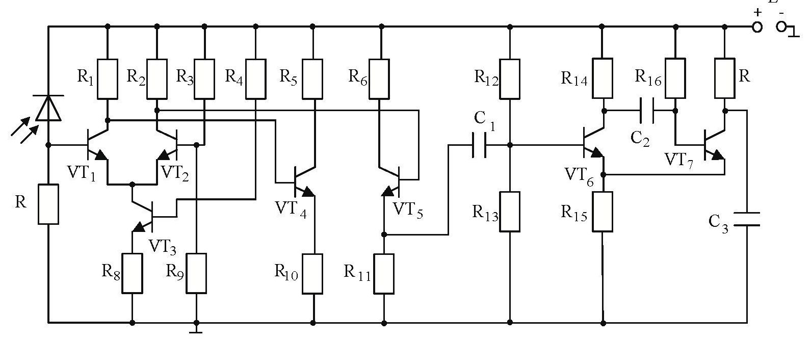 Принципиальным вопросом при проектировании полностью оптического коммутатора является оценка его быстродействия. Самое большое влияние на быстродействие коммутатора оказывает время установления управляющего сигнала при преобразовании его из оптической формы в электрическую. Для оценки быстродействия необходимо составить эквивалентную электрическую схему формирователя управляющего сигнала и рассчитать время переходного процесса. В качестве схемы формирователя управляющего сигнала в данной работе предлагается использовать два последовательно соединенных каскада на дифференциальных схемах, включающих усилитель мощности, эмиттерный повторитель, а также одновибратор (рис. 10). На вход схемы подключается фотодиод, на выход — отклоняющая система с емкостью Сз.