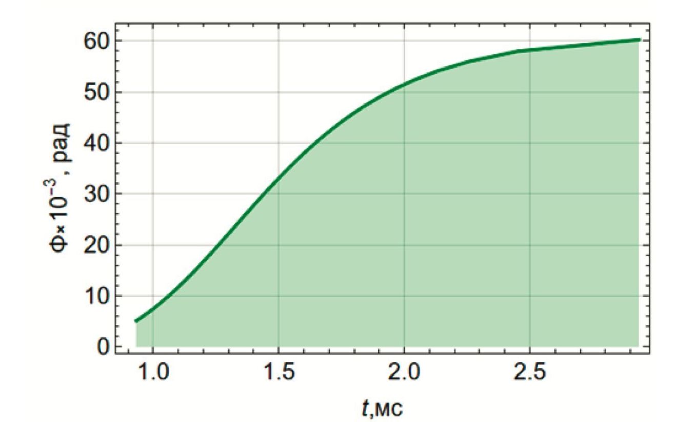 На рис. 5 показана фаза радиосигнала, вычисленная в точке приёма по формуле (6)