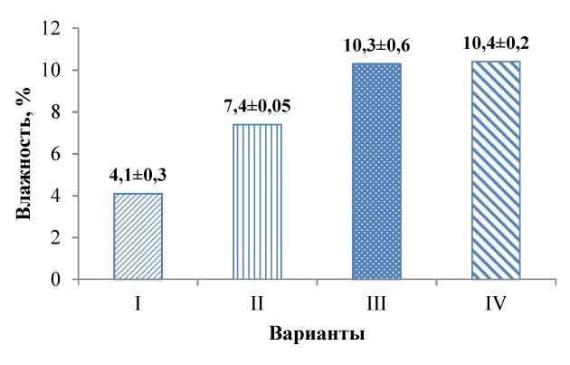 Рис. 2. Диаграмма показателей средней влажности образцов арболита по вариантам,