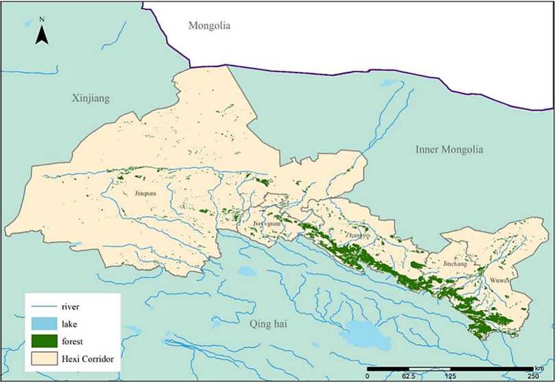 Fig. 1. Location of forest areas in Hexi Corridor