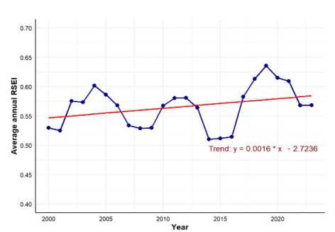 Рис. 4. Статистика среднегодовых значений индекса RSEI с 2000 по 2023 гг.