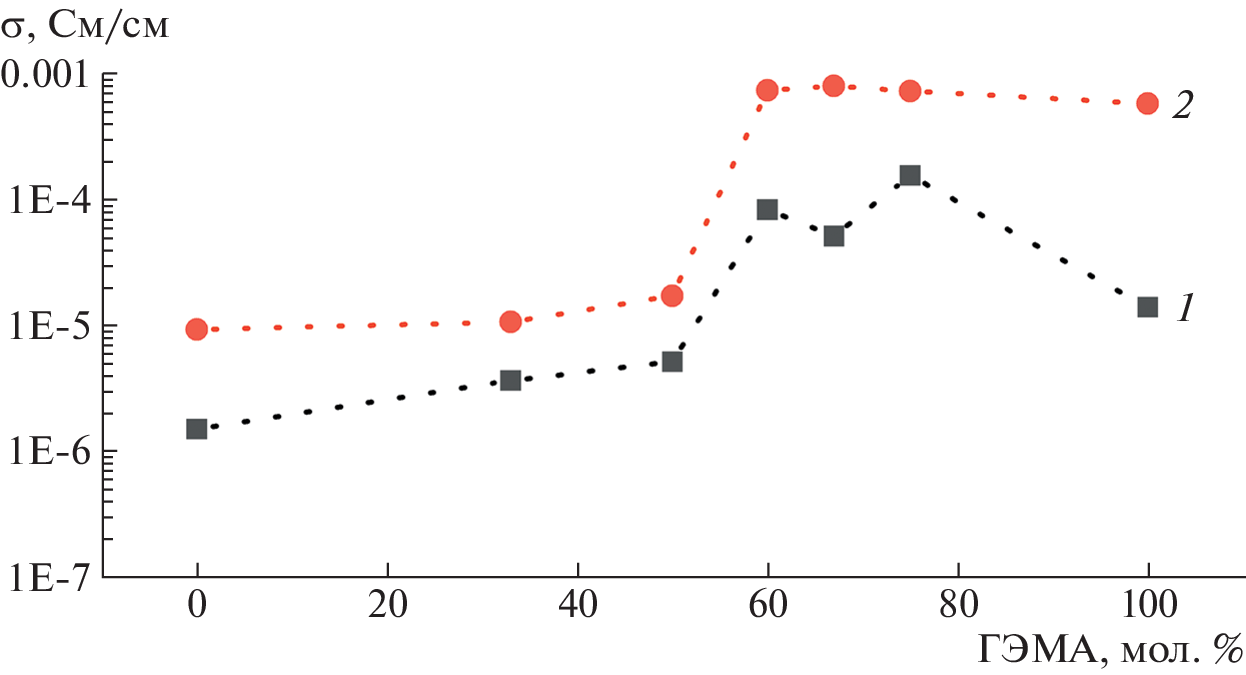 Issues related to the use of 2-hydroxyethyl methacrylate–glycidyl methacrylate copolymers as a polymer matrix for developing solid polymer electrolytes are considered. Effect of the composition of copolymers with varying ratio of oxygen atoms in hydroxyl, carbonyl, ether, and epoxy groups and the amount of the added lithium salt on the ionic conductivity of the solid polymer electrolytes is studied. The resulting polymer films exhibit a high ionic conductivity reaching up to 1.2 × 10‒4 to 1.2 × 10‒3 S/cm at 25 and 80°С, respectively.