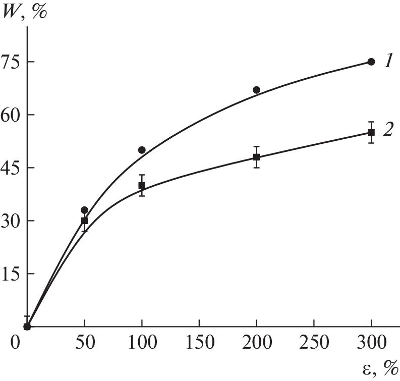 На основе пленок ПП, деформируемых в растворах ПВС по механизму крейзинга, получены новые полимер-полимерные нанокомпозиты. Методами АСМ, ДСК, гравиметрии, механических испытаний, измерения краевых углов смачивания и объемной пористости исследованы механизм деформации ПП в растворах ПВС, структура, состав, теплофизические свойства и смачиваемость композитов. Cтепень растяжения ПП и концентрация ПВС в растворе позволяют контролировать состав нанокомпозитов. Содержание ПВС может достигать 45 мас. % при степени вытяжки ПП 300%. После удаления летучей жидкой среды ПВС кристаллизуется в затрудненном пространстве мезопористой матрицы ПП с понижением степени кристалличности до 12‒14%. Введение гидрофильного компонента приводит к улучшению смачивания ПП, и краевой угол снижается с 98° для исходного ПП до 42° для композита. Гидрофилизацию с использованием явления крейзинга можно рассматривать как способ модификации, переработки и вторичного использования крупнотоннажного полимера.