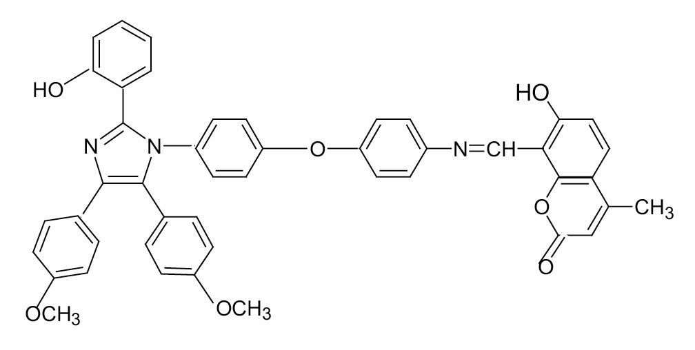 Ранее [8] была синтезирована органическая диада I, молекула которой вмещает два различных по природе люминофора – тетраарилимидазольный и азометинокумариновый, соединенных дифенилоксидным мостиком, чтобы препятствовать передаче энергии между ними (см. схему 1).