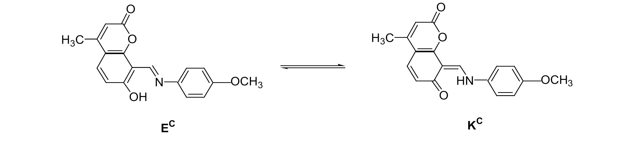 Соединение II в растворах существует в равновесии енол–кетон. Следует отметить, что в апротонных средах преобладает енольная форма, а содержание кето-формы, имеющей полосу поглощения ~450 нм, увеличивается в протонных растворителях, например в этаноле. Далее показаны таутомерные формы соединения II (см. схему 4).