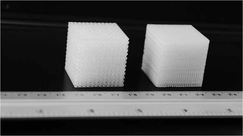 Рис. 1. Образцы кубов с гироидным заполнением, изготовленные по FDM-технологии.