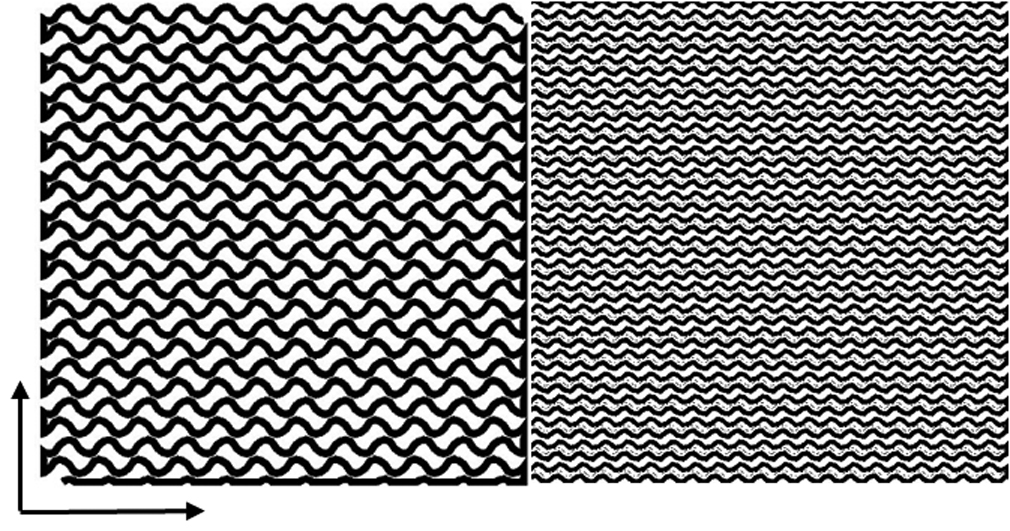 Рис. 2. Изображение первого слоя печати структуры гироида при параметрах степени заполнения 40 и 70%.