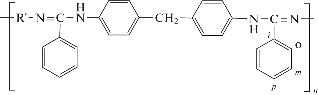 Aromatic polyamidines based on 4,4′-diphenylmethane diisocyanate and bisamides have been synthesized and studied. The one-step reaction of bisamides with diazocyanate according to the [2+2]-cycloaddition mechanism includes a concerted process of the formation of two new σ-bonds in the transition state. The formation of polyamidine occurs as a result of decarboxylation, which completes this reaction. Due to the availability of starting compounds, ease of synthesis, good solubility, and high heat resistance and thermal stability of the resulting polymers, there are wide opportunities for producing new materials by conventional industrial processes. Polyamidines have a sufficiently large set of important technological properties, which suggest their greater potential in relation to applied problems. The resulting film materials and glass-reinforced plastics based on polyamidines show high mechanical properties that are not inferior to those of materials made from commercial polyamides and polybenzimidazoles.