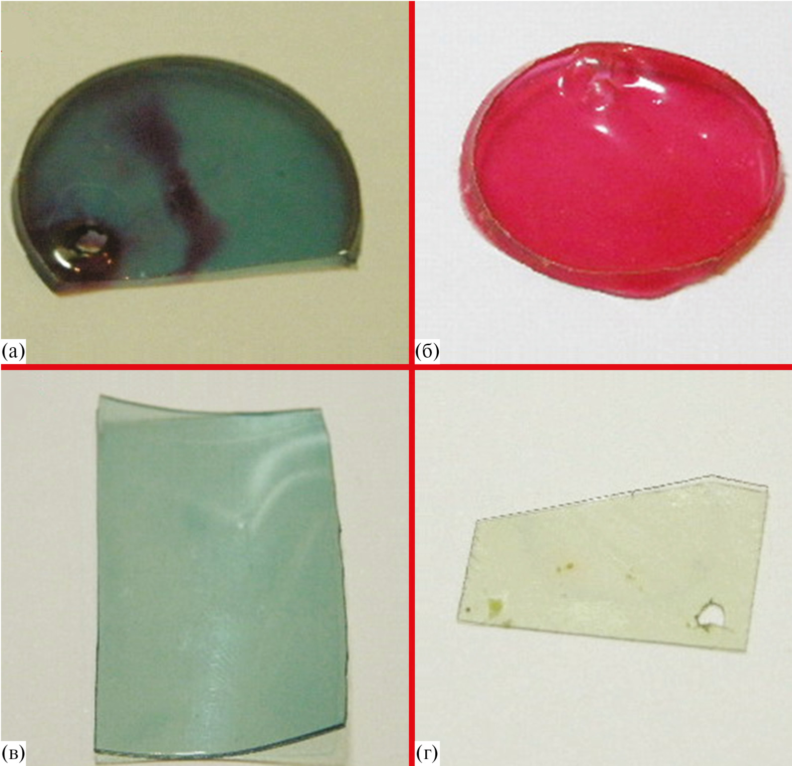 В качестве прозрачных полимерных матриц использовали термопластичные полимеры, представляющие собой пленки толщиной 120 мкм (ПК), 500 мкм (ПК, ПП и ПЭ, ПЭНП, Ф-42) или пластинки толщиной 3 мм (ПММА, ПК). Вводимые в полимер спироантрооксазины и спиропираны представлены в табл. 3.